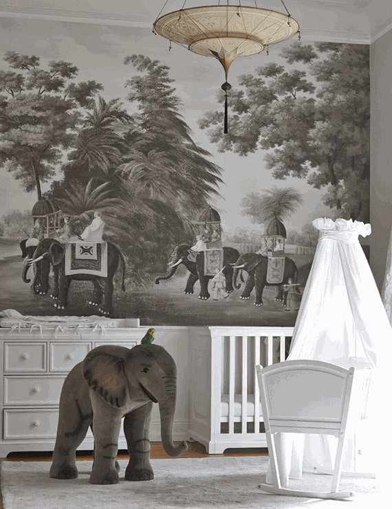 Nursery With Elephant Wallpapers // De Gournay // Simplified Bee ... Desktop Background