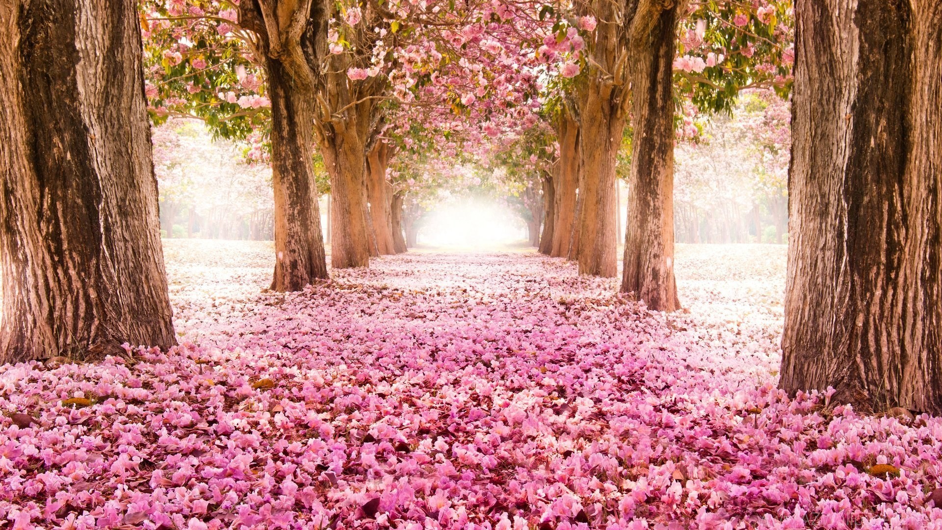 Park Alley Road Sakura Bloom Tree Flower Pink Nature HD Wallpapers Desktop Background