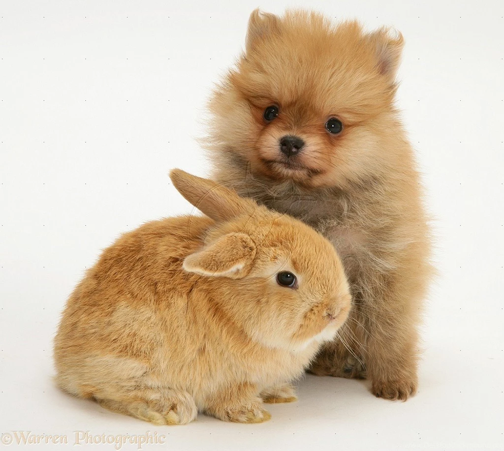 Pomeranian Puppy And Rabbit Animals Wallpapers Desktop Background
