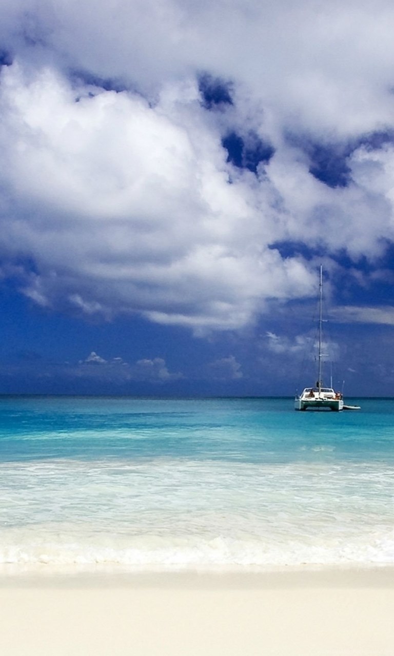 Pure Bright Sunny Ocean Beach Sea View Skyline Boat iPhone 6 ... Desktop Background
