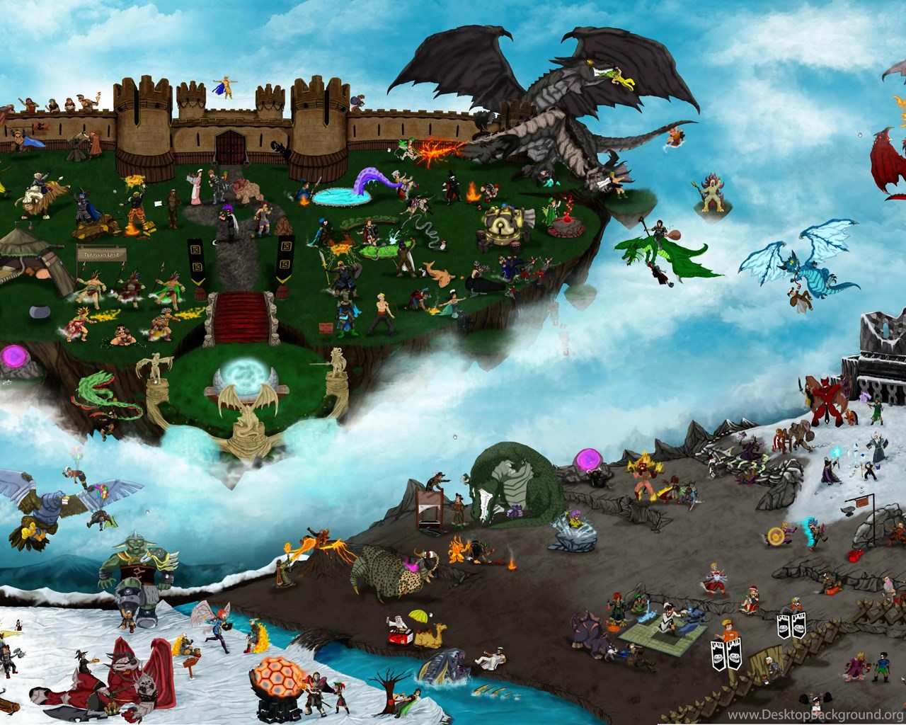 RUNESCAPE Fantasy Adventure Map City Dragon Battle Island Castle ... Desktop Background