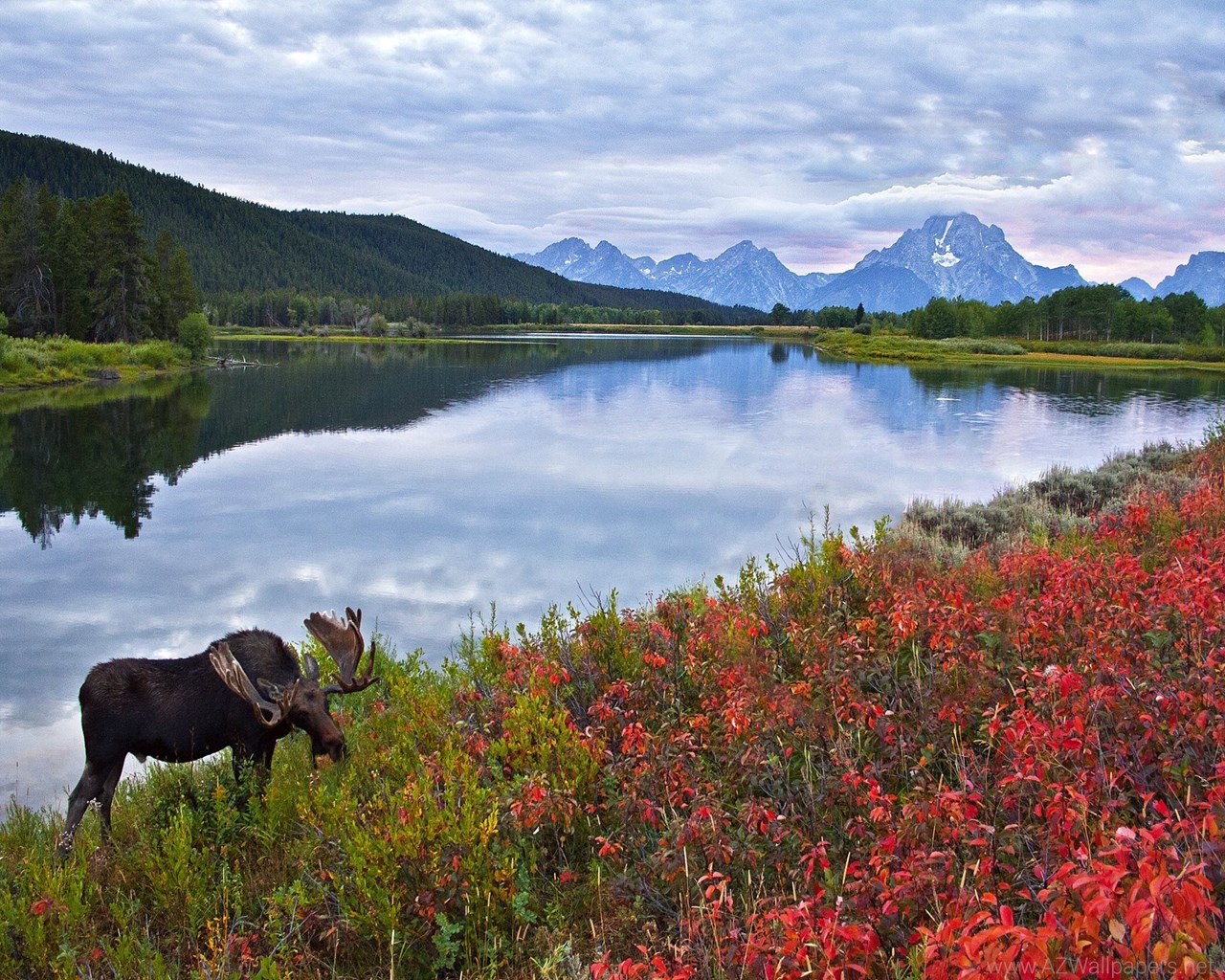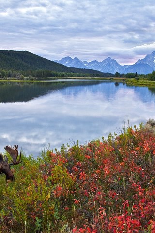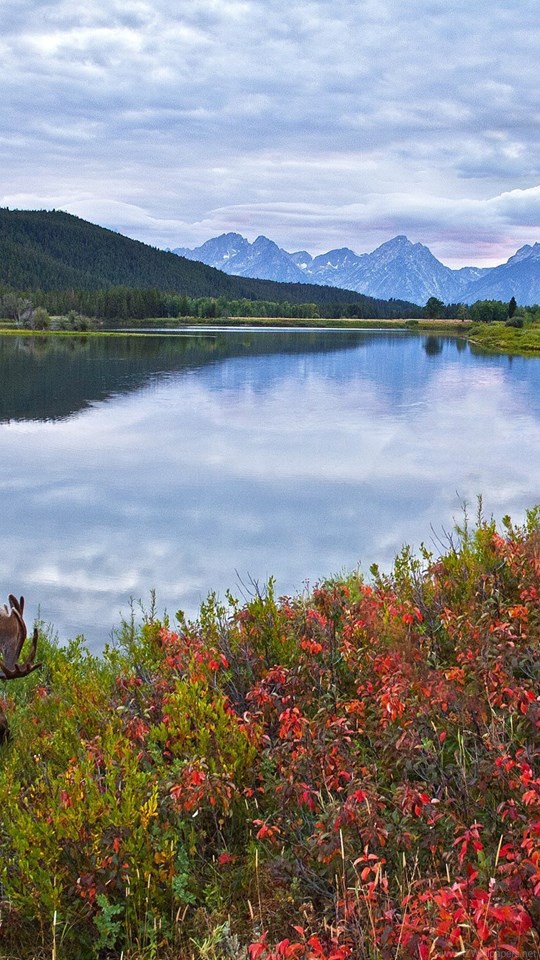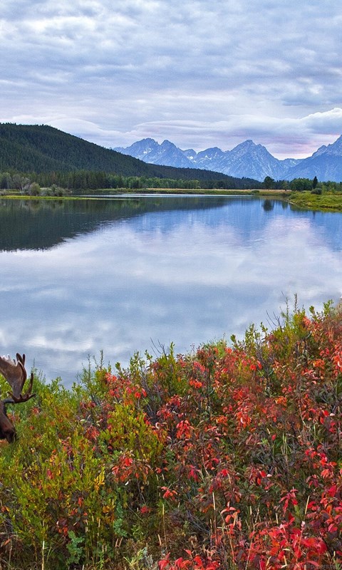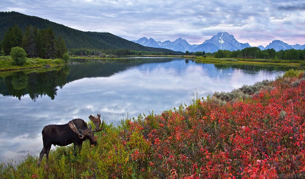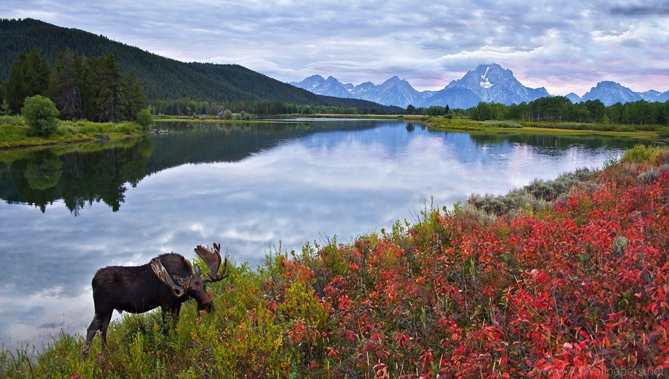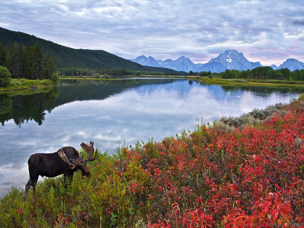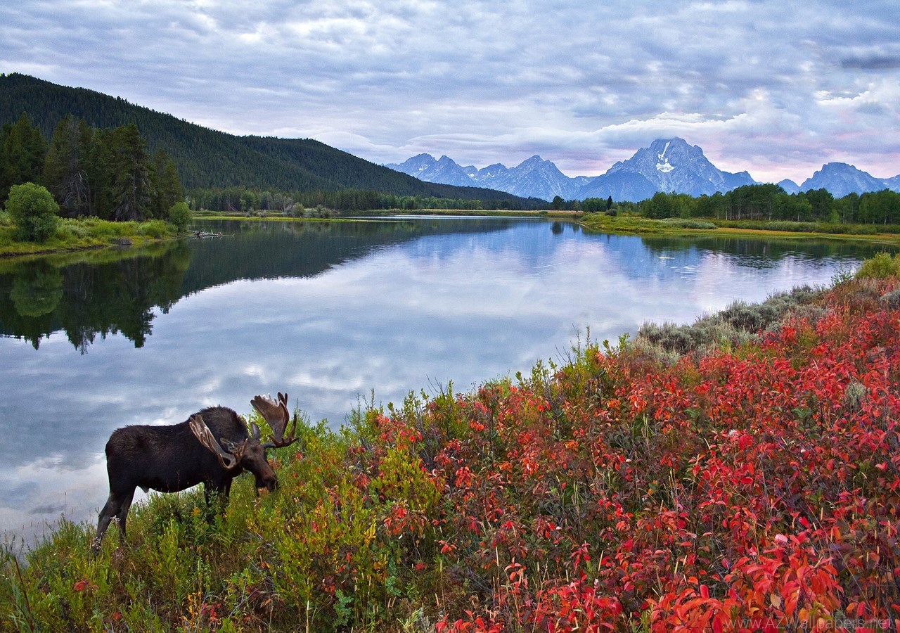 Sky Mountains Lake Flowers Elk Moose Deer Wallpapers Desktop Background