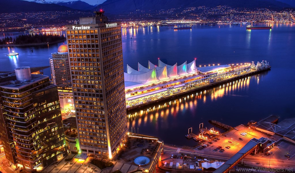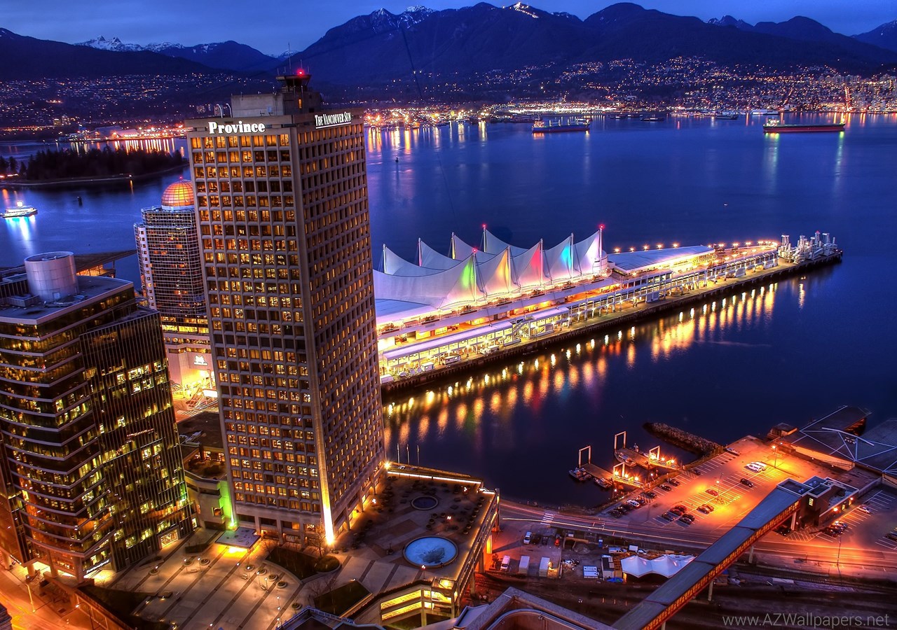 Skyscrapers: Vancouver Sails Blue Ocean Water Highrise City Night ... Desktop Background