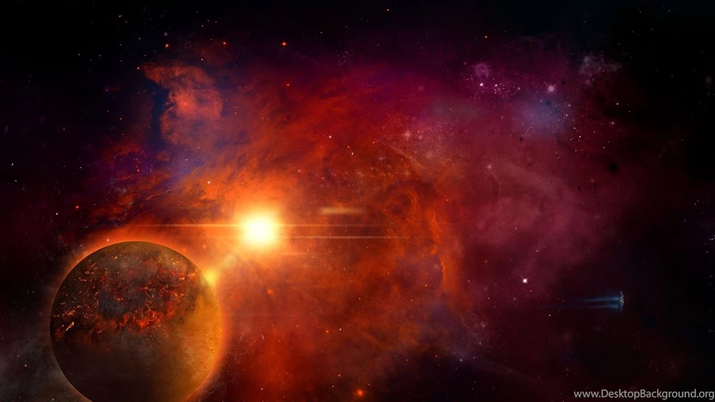 Spaceship flying away from the orange nebula 1080p fantasy desktop wallpaper 25048.jpg Desktop Background