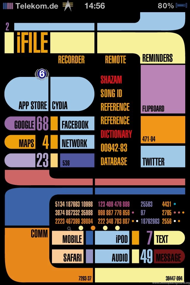 Description: Download Star Trek LCARS HD Desktop Background Desktop Background from the above display resolutions for HD, Android HD , iPhone 4, iPhone 4S, iPod touch 4, iPhone, iPhone 3G, iPhone 3GS. If you want, you can download Original resolution which may fits perfect to your screen.