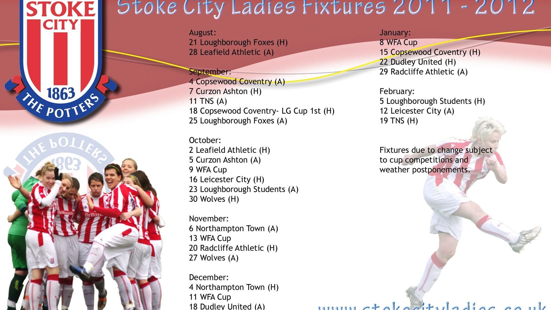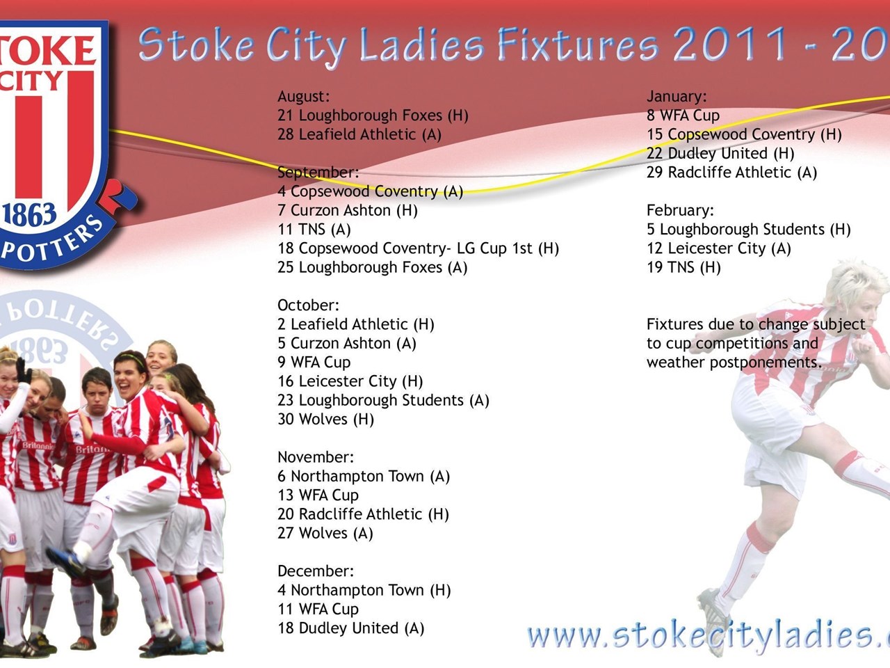 Description: Download Stoke City Ladies Football Club, Premier League Football Team ... Desktop Background Desktop Background from the above display resolutions for Standart 4:3, Standart 5:4, Dual Screen Wide, Widescreen 16:10, Widescreen 16:9, Netbook, Tablet, Playbook, PlayStation, HD, Android HD , iPad, iPad 2, iPad mini, iPhone 6, iPhone 6S, iPhone 7, iPhone 8, iPhone 5, iPhone 5S, iPhone 5C, iPod Touch 5, iPhone 4, iPhone 4S, iPod touch 4, iPhone, iPhone 3G, iPhone 3GS. If you want, you can download Original resolution which may fits perfect to your screen.