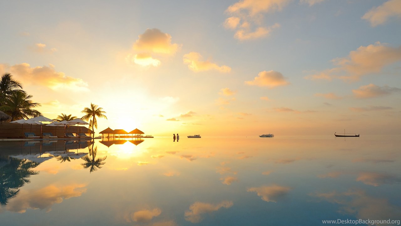 Tropical Pool Reflection Sunset Sunlight Wallpapers Desktop Background