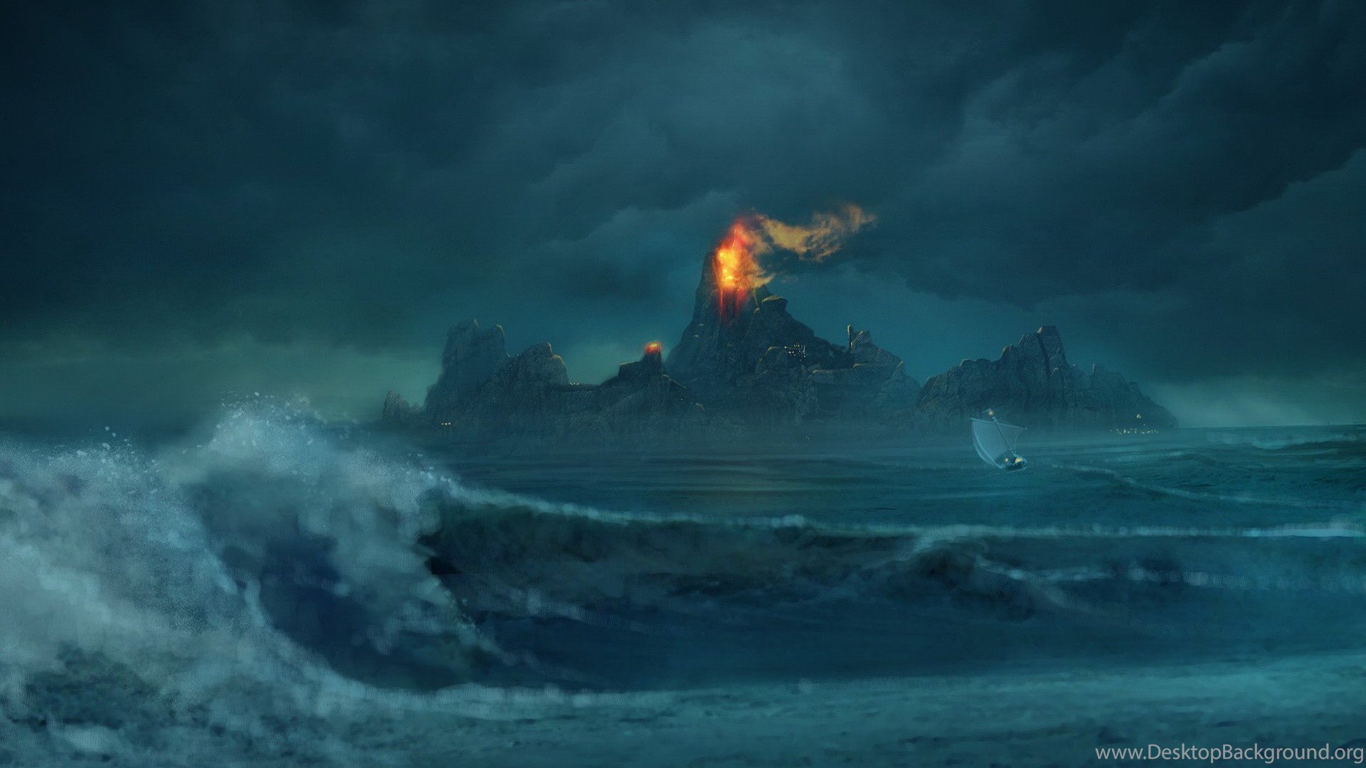 Volcano, Paper, Supplier, Stormy, Sea, Photo, Middle ( Desktop Background