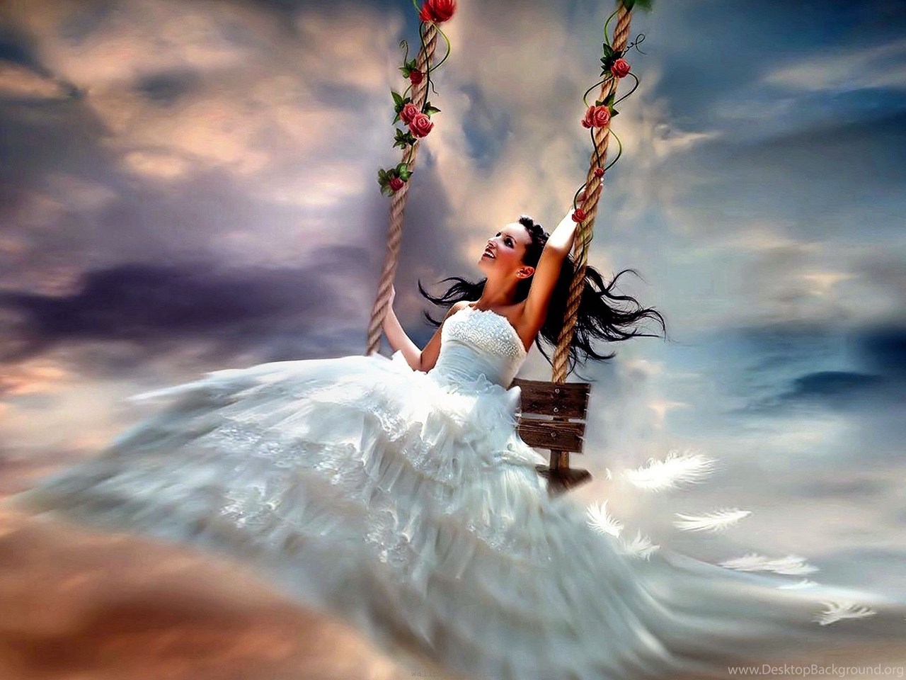 Wallpapers fantasy nature wallpaper female flowers happy pretty 1.jpg Desktop Background