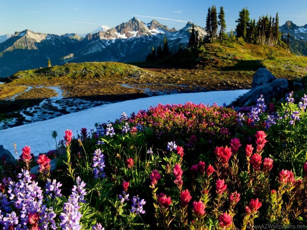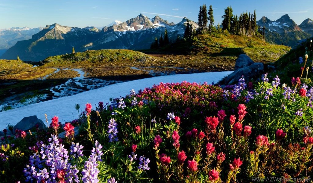 Wallpapers Snowboards Free Hd Snow Mountain Flower Field 1366x768 ... Desktop Background