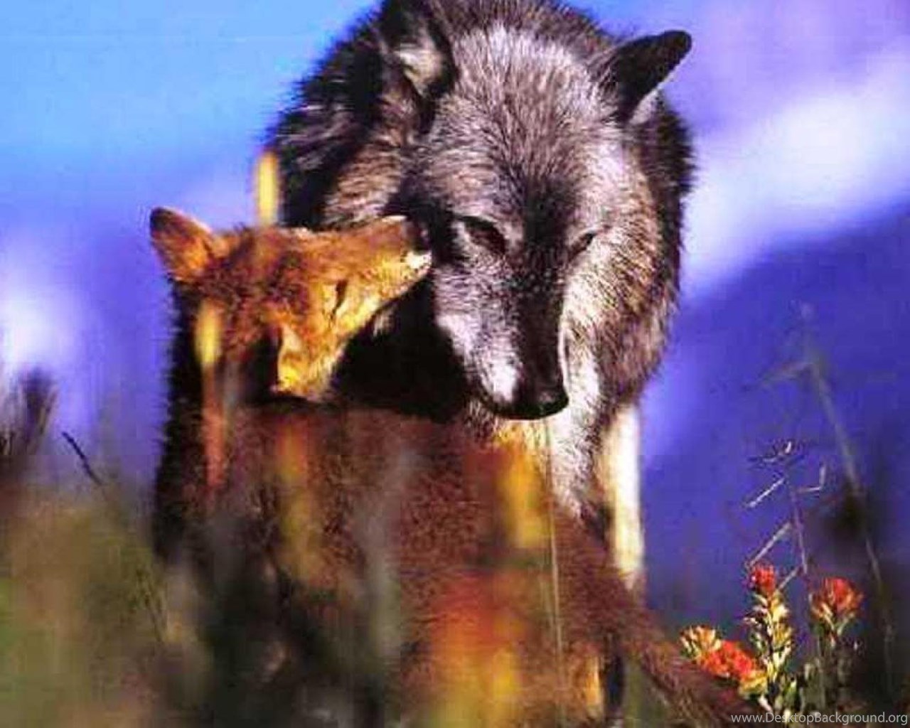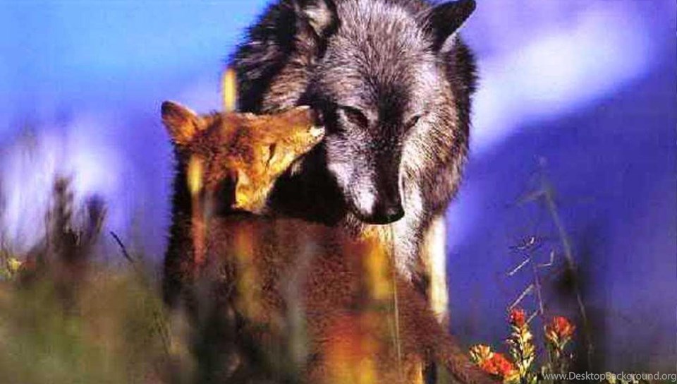 WOLF MOTHER AND PUP WALLPAPER ( Desktop Background