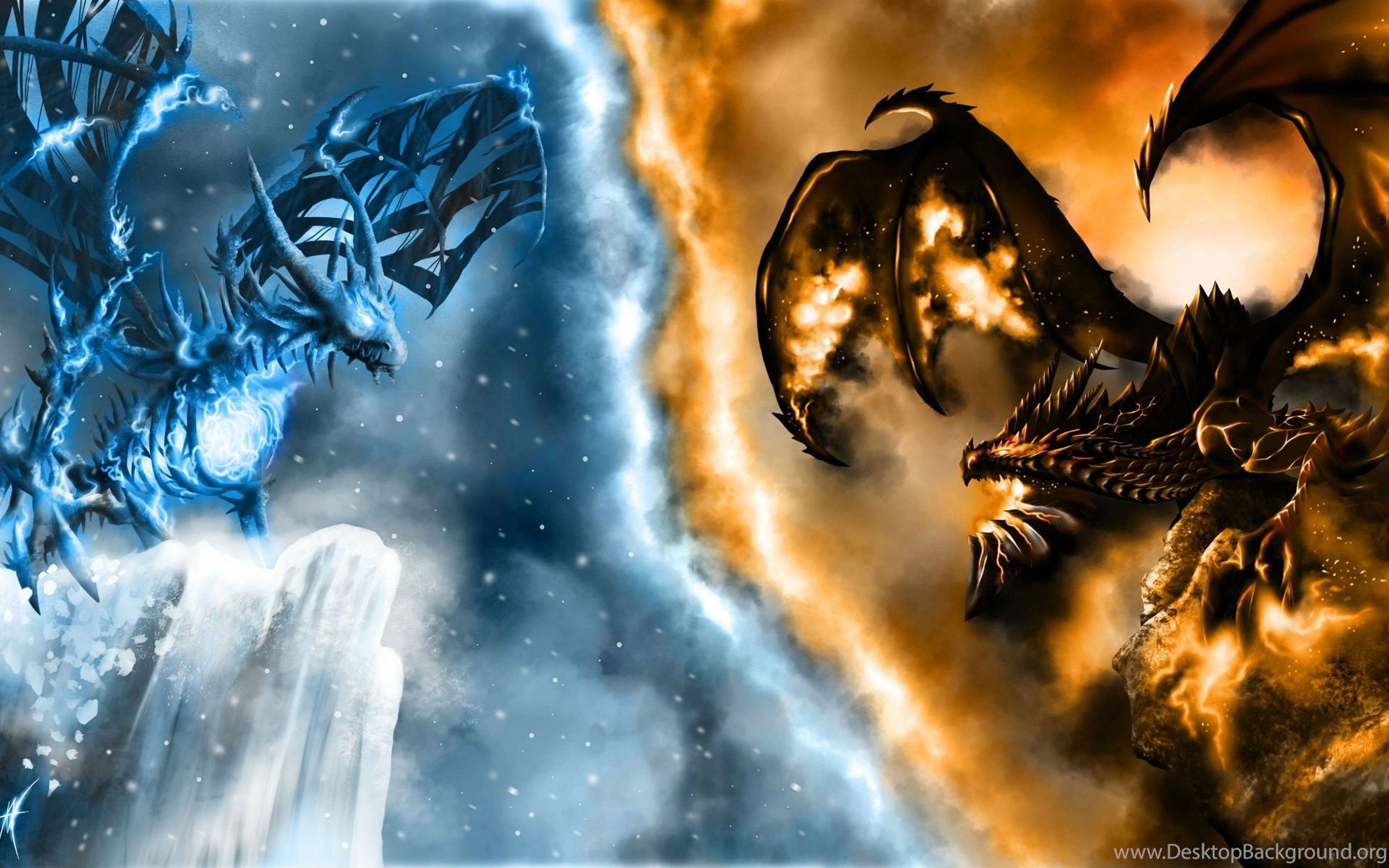 World Of WarCraft WoW Dragons Fire Snow Games Dragon Ice Fantasy ... Desktop Background