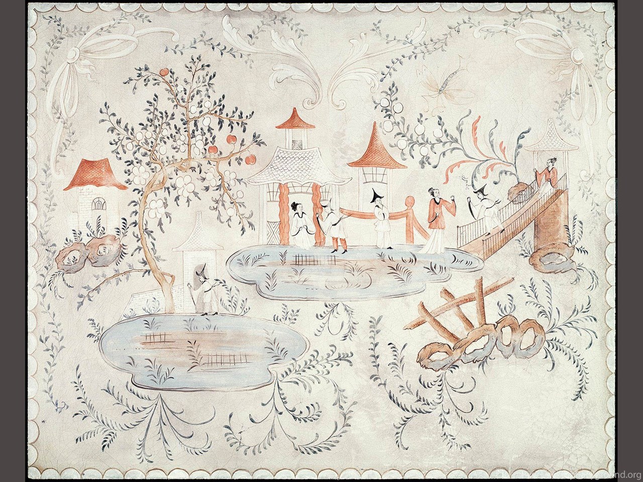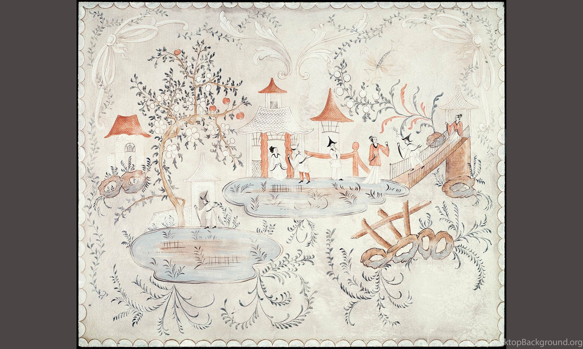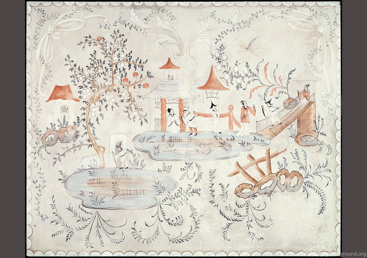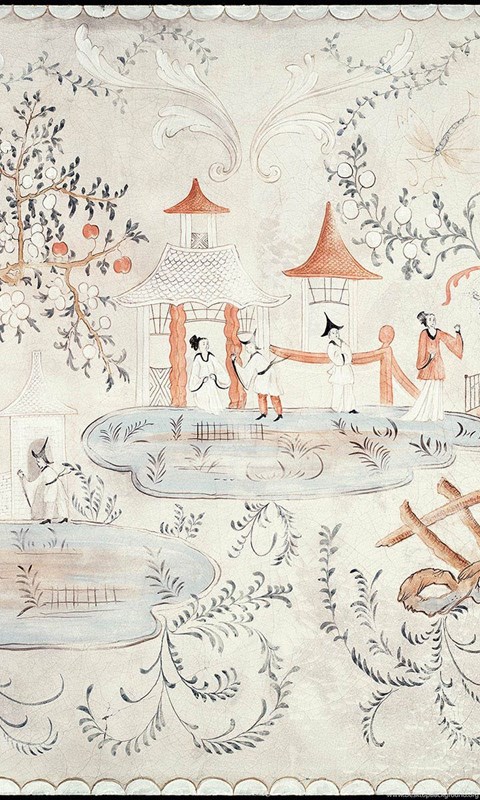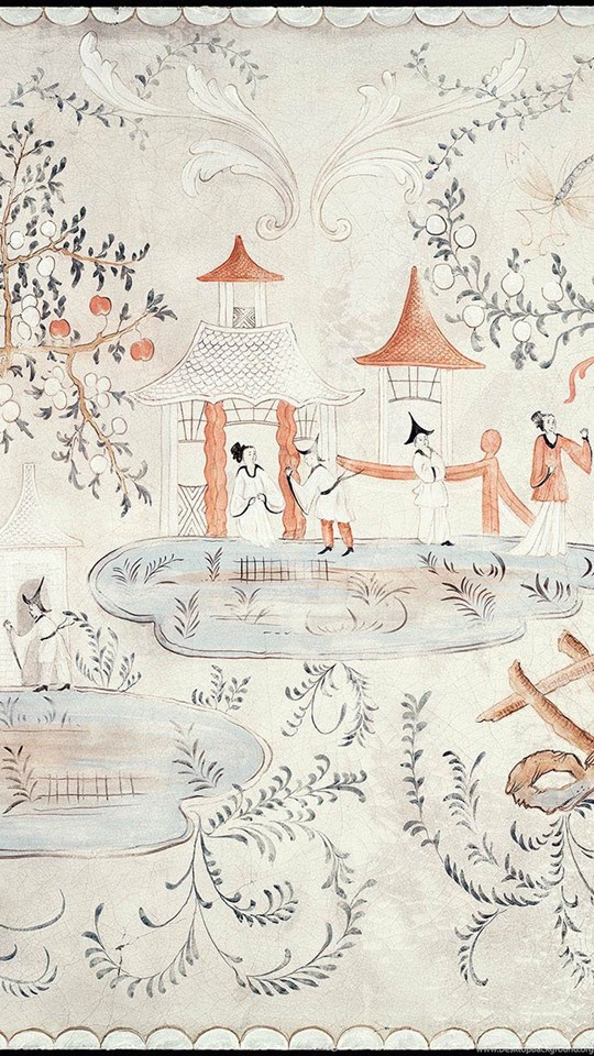 | Image Description | Detail of Swedish chinoiserie panel on cracked linen. This mural was hand painted by Lena Fransioli and Brooke Sheldon on commission of Honey Collins Design, available up to 60.5" x 49". |